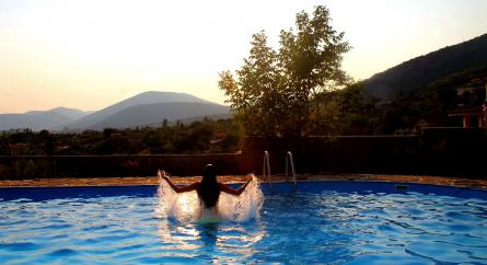 Der große Pool hat frühmorgens bis abends Sonne. Im Herbst und Frühjahr bheizbar.