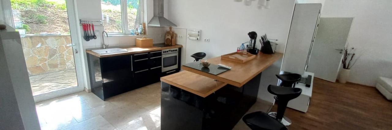 Für den Fall, dass die Villa in zwei getrennten Wohnungen gemietet wird, gibt es eine weitere, kleinere Küche. Diese ist hochwertig ausgestattet mit echter Marmorplatte, alles etwas kleiner und mit einigen speziellen Komfortmerkmalen für das Haus: